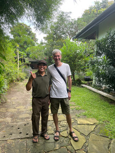 Years of careful tending makes the garden at Rumah Sawah a welcome haven of quiet juxtaposed with the maddening noise and pace of Yogyakarta and Rumah, small in size, is surely a giant in heart and kindness. His morning fruit juices were refreshing followed by inspiring chats with Joan, his wife and partner in this magical fairyland.